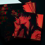 Matte print, double-sided coated with soft-touch film and embossed red foil.