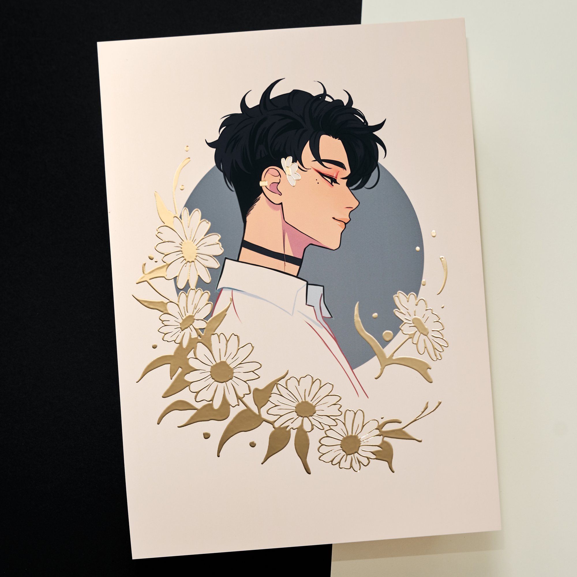 High-quality matte print, double-sided coated with soft-touch film and and with gold embossed foil