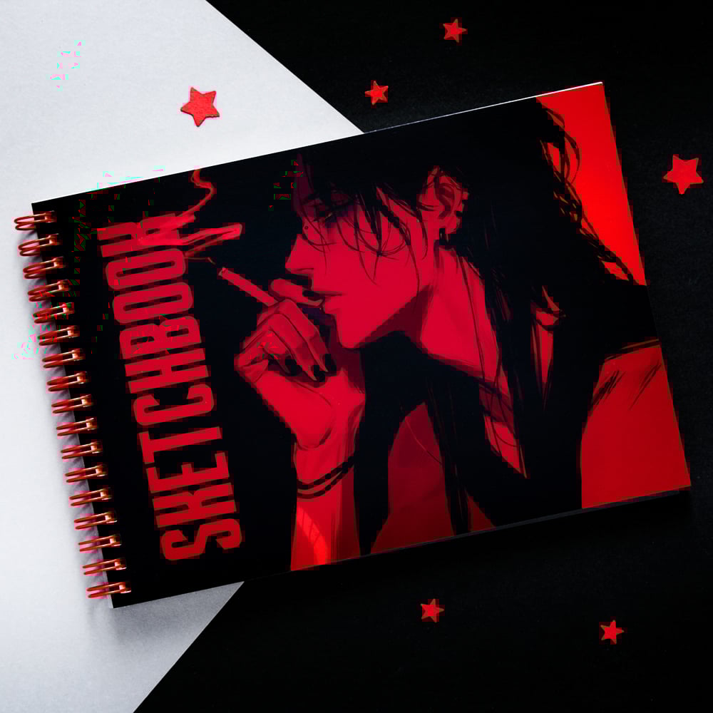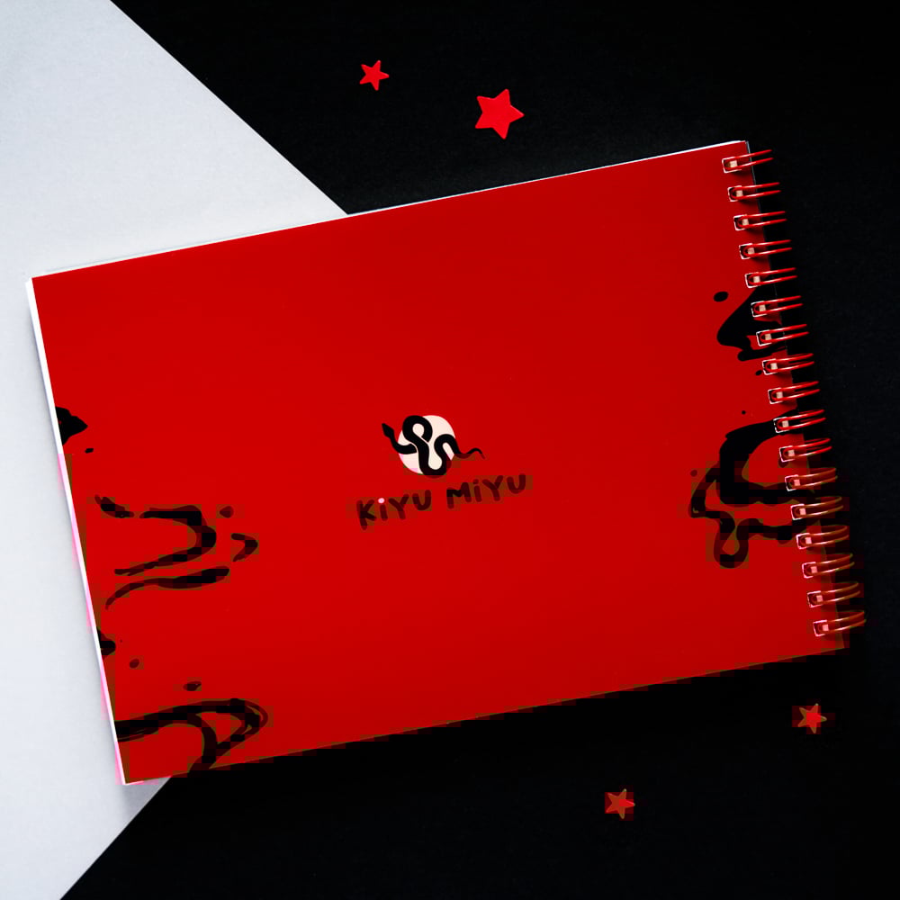 Additional rigid semi-transparent cover protecting the entire notebook. Spiral binding on the shorter side.
