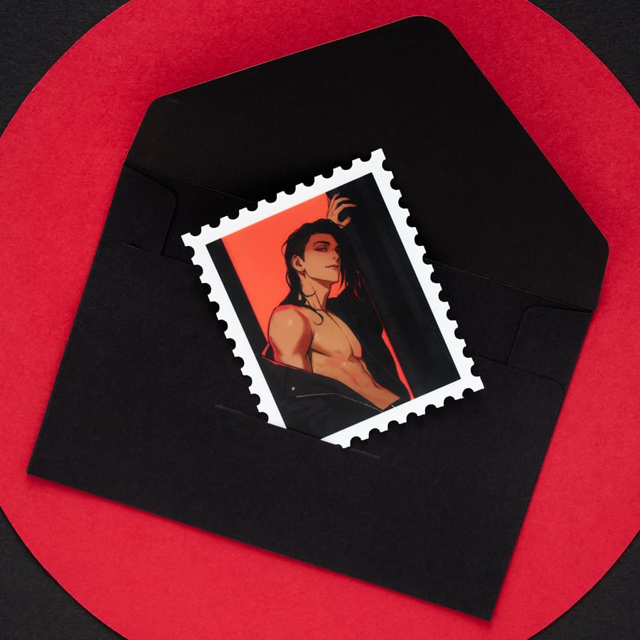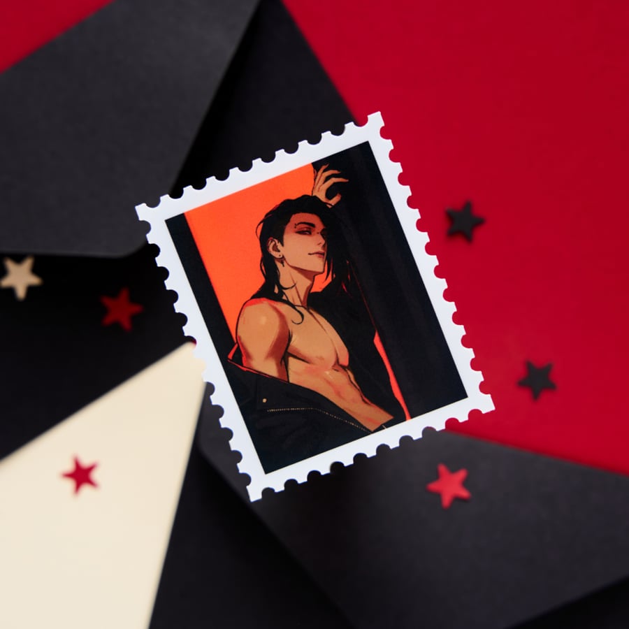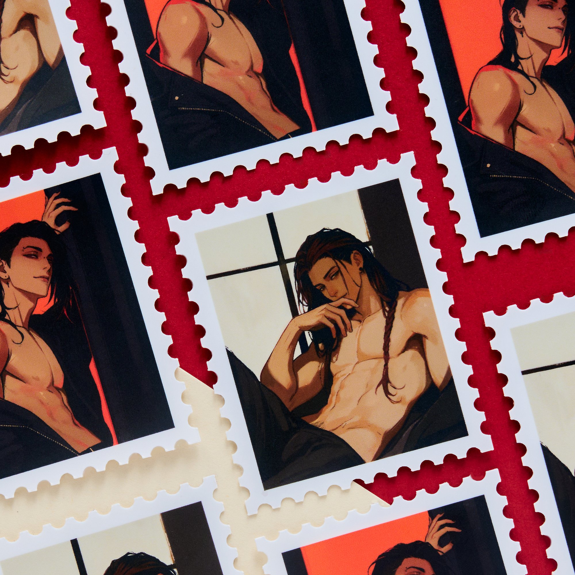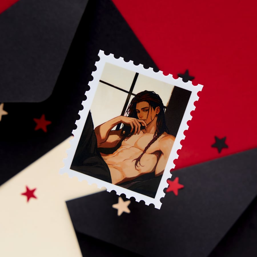Sticker with matte finish an beige borders.
